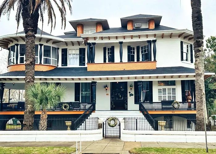 El Schaefer Haus Mansion es una joya situada en el corazón del histórico District de Galveston. Este encantador alojamiento combina la elegancia de muebles antiguos con el confort moderno, ofreciendo habitaciones equipadas con exquisitas sábanas de 850 hilos, toallas suaves y televisores de pantalla plana. Cada habitación cuenta con un baño privado, ideal para disfrutar de relajantes baños en una bañera tipo clawfoot, además de un espacio para que guardes todas tus pertenencias.